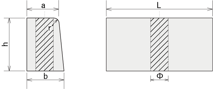 片面R歩車道境界ブロック 基本デリネーター 左からD、C、B