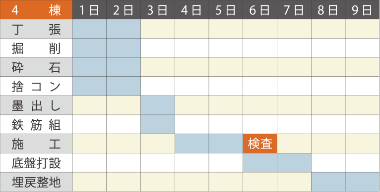 単棟の場合、現場打ち基礎工事は通常2~3週間かかりますが、アイランドベースなら