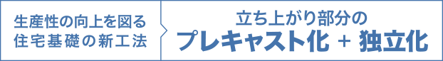 地盤調査に基づく無駄のない設計と立ち上がり部分のプレキャスト化+独立化により工期や手順を効率化できる住宅基礎の新工法です。