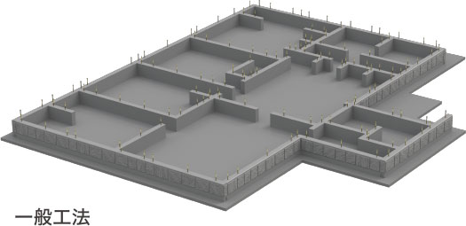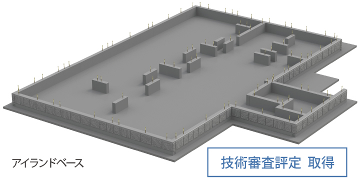アイランドベースは、基礎立ち上がり部分のプレキャスト化+独立化を実現した画期的な新工法。